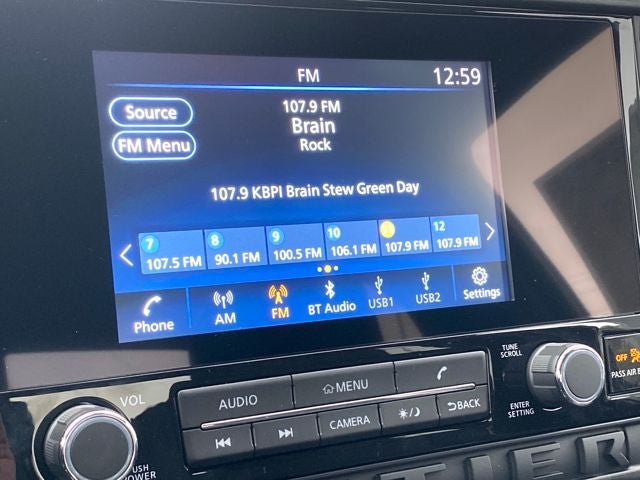- Radio: AM/FM/AUX/USB Audio System -inc: 4 speakers, 8.0" color touch-screen display, wired Apple CarPlay, wired Android Auto, Bluetooth® hands-free phone system and streaming (audio or text message), voice recognition for audio features, Siri Eyes Free, NissanConnect services, Wi-Fi hotspot and 1 USB-A and 1 USB-C front ports