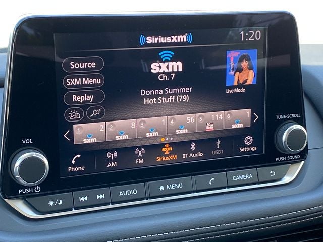 - Radio: AM/FM NissanConnect -inc: 6 speakers plus 2 tweeters, Apple CarPlay, Android Auto, 8" color touch screen display, Bluetooth®, 2 front USB type-C, Wi-Fi hotspot and NissanConnect Services powered by SiriusXM