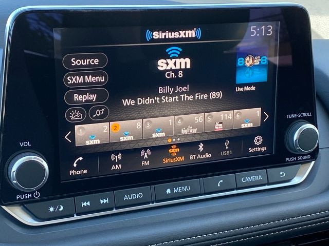 - Radio: AM/FM NissanConnect -inc: 6 speakers plus 2 tweeters, Apple CarPlay, Android Auto, 8" color touch screen display, Bluetooth®, 2 front USB type-C, Wi-Fi hotspot and NissanConnect Services powered by SiriusXM