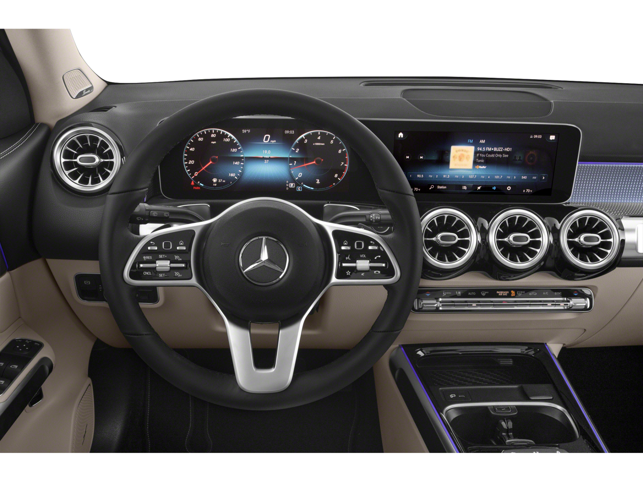 - Radio: MBUX Multimedia System -inc: 7" touchscreen multimedia display, voice control w/natural language understanding and keyword activation, 4 USB-C ports, Bluetooth® connectivity and Mercedes me connect services w/trial period