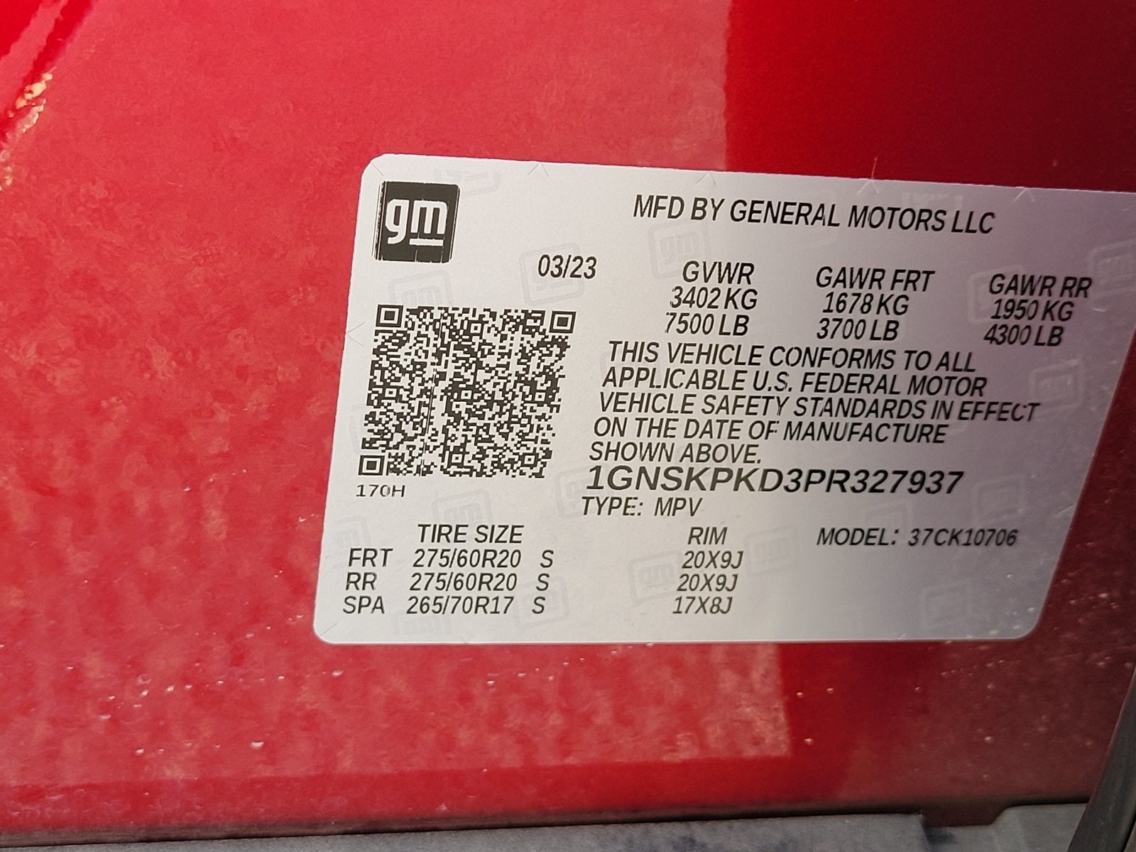 - Front Tire Size: 275/60R20SL