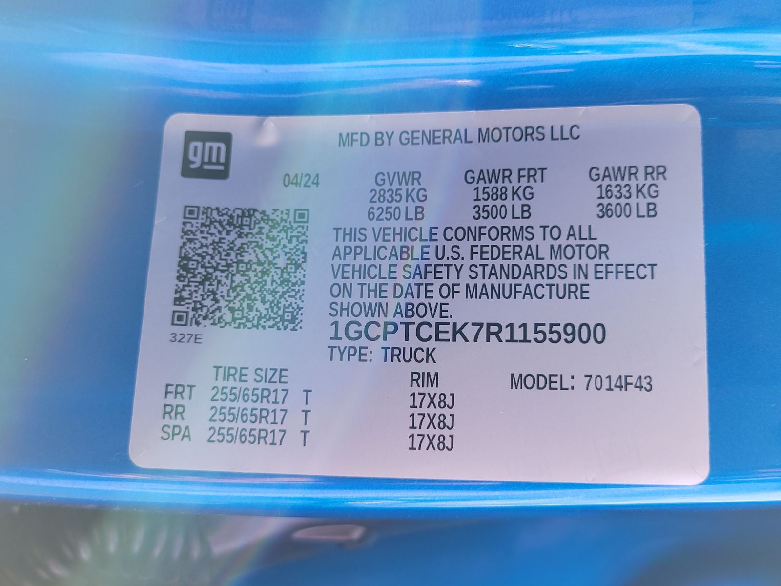 - Spare Tire Order Code: QDC